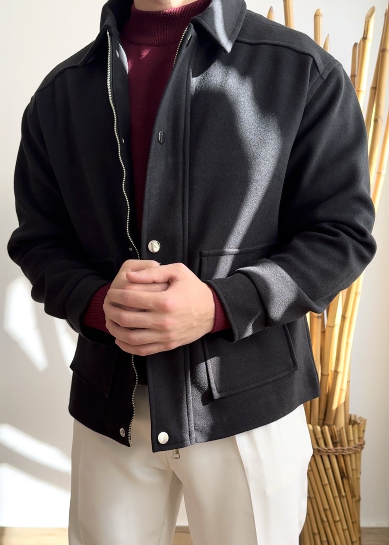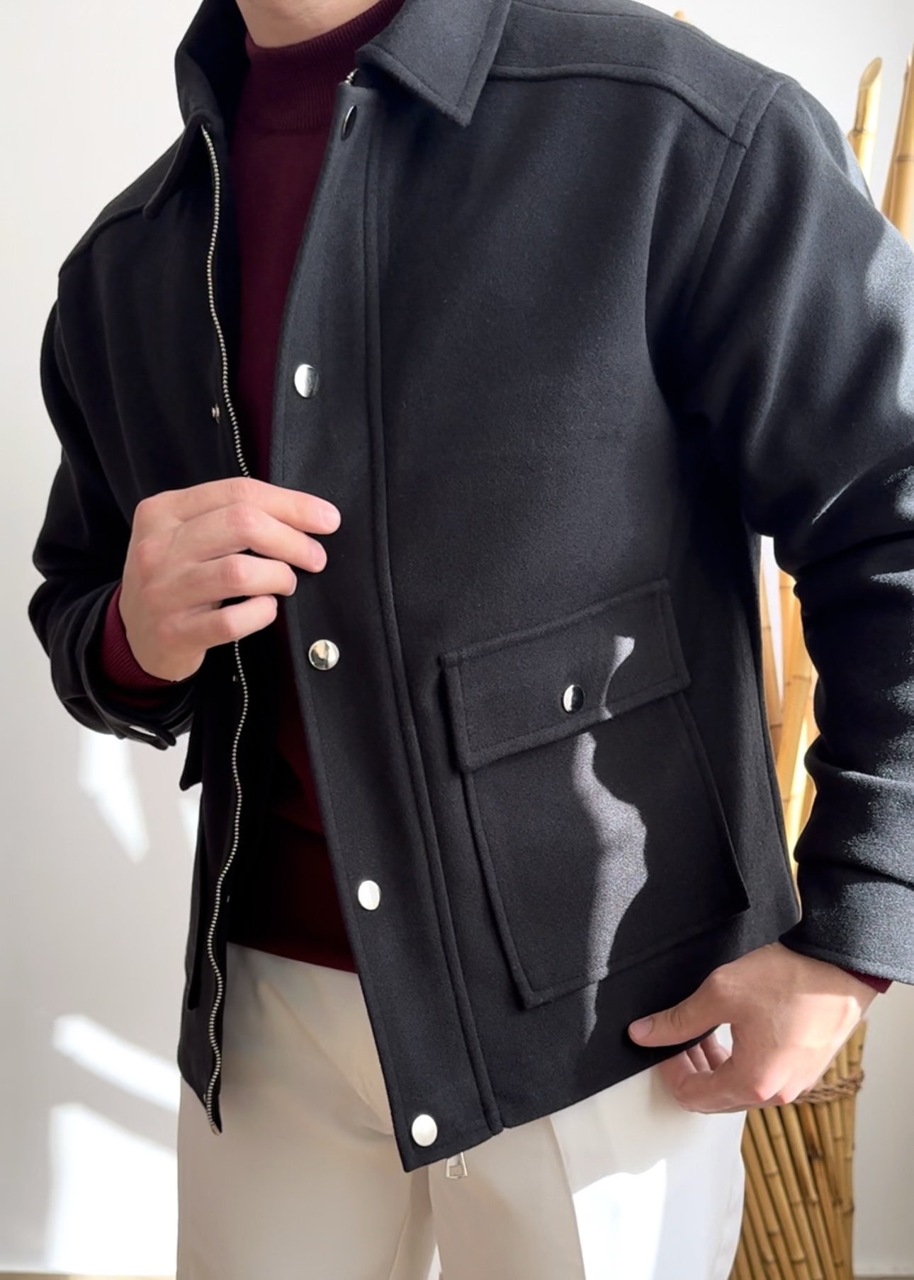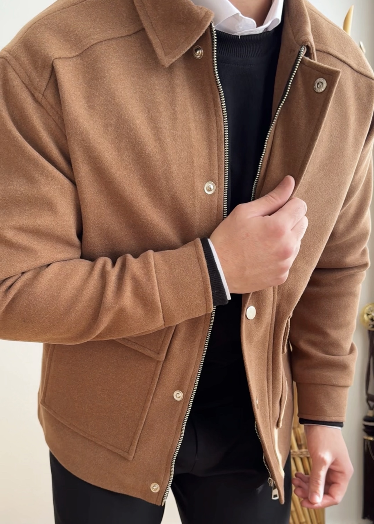 کت فوتر زیپ و دکمه کار شده داخل آستر